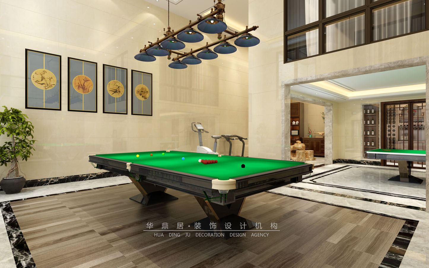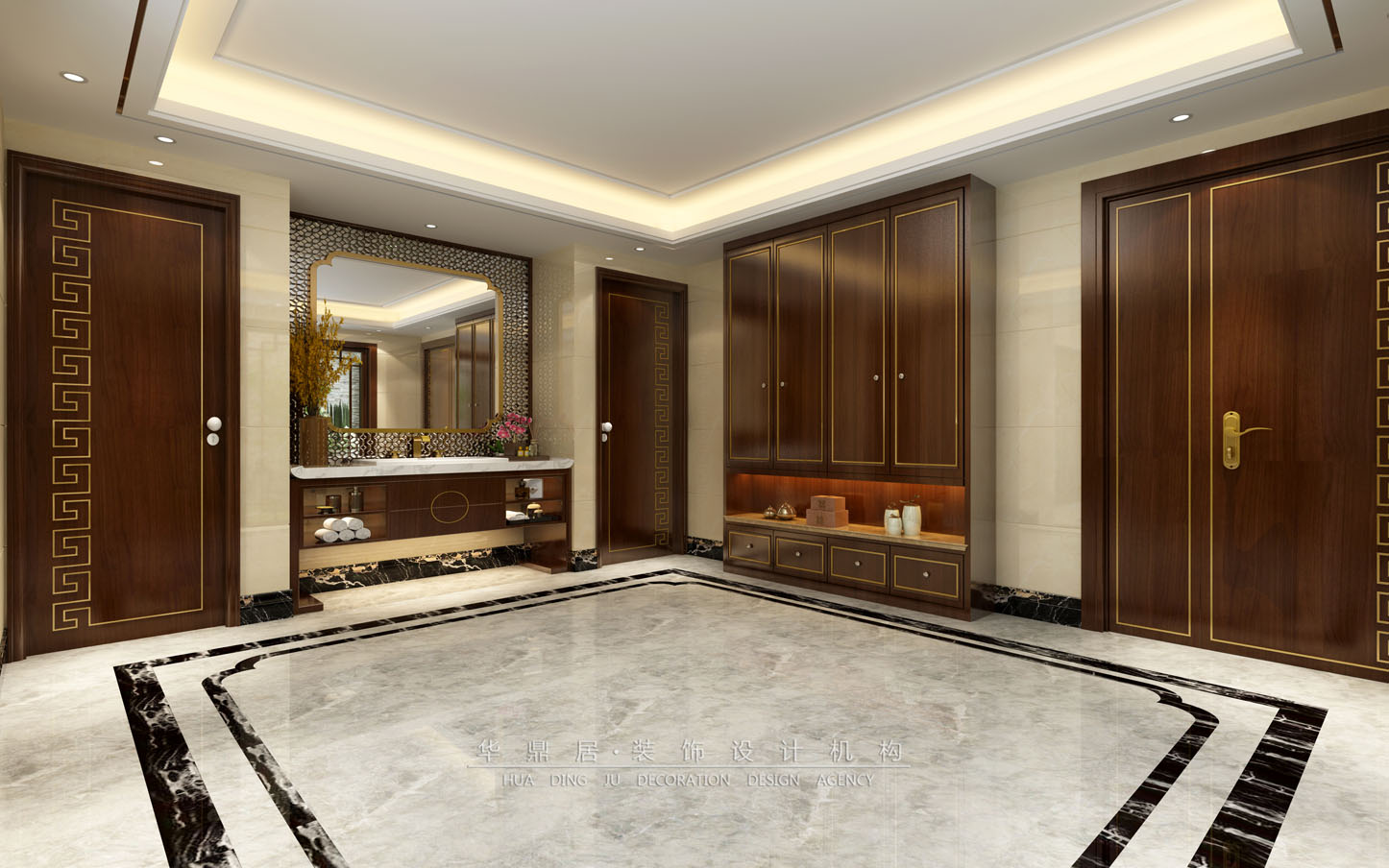 主要建材:意大利灰地砖、钛金线条、胡桃木墙板、阿富汗黑金花线条