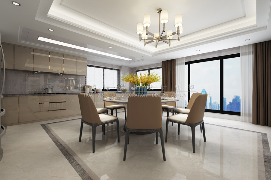 设计说明:本案围绕现代风格为主题,运用天然石材与实木的完美结合设计,将一些现代经典元素融入其中,在色彩上以简约色彩的高度凝练和造型的极度简洁,在满足功能需要的前提下。让一些空间和人与物进行合理的分配组合,描绘出最丰富动人的空间效果。