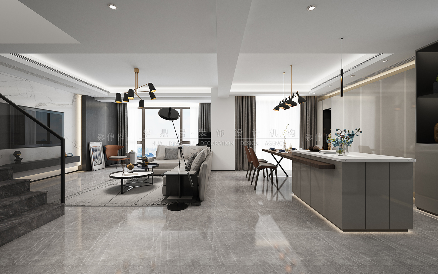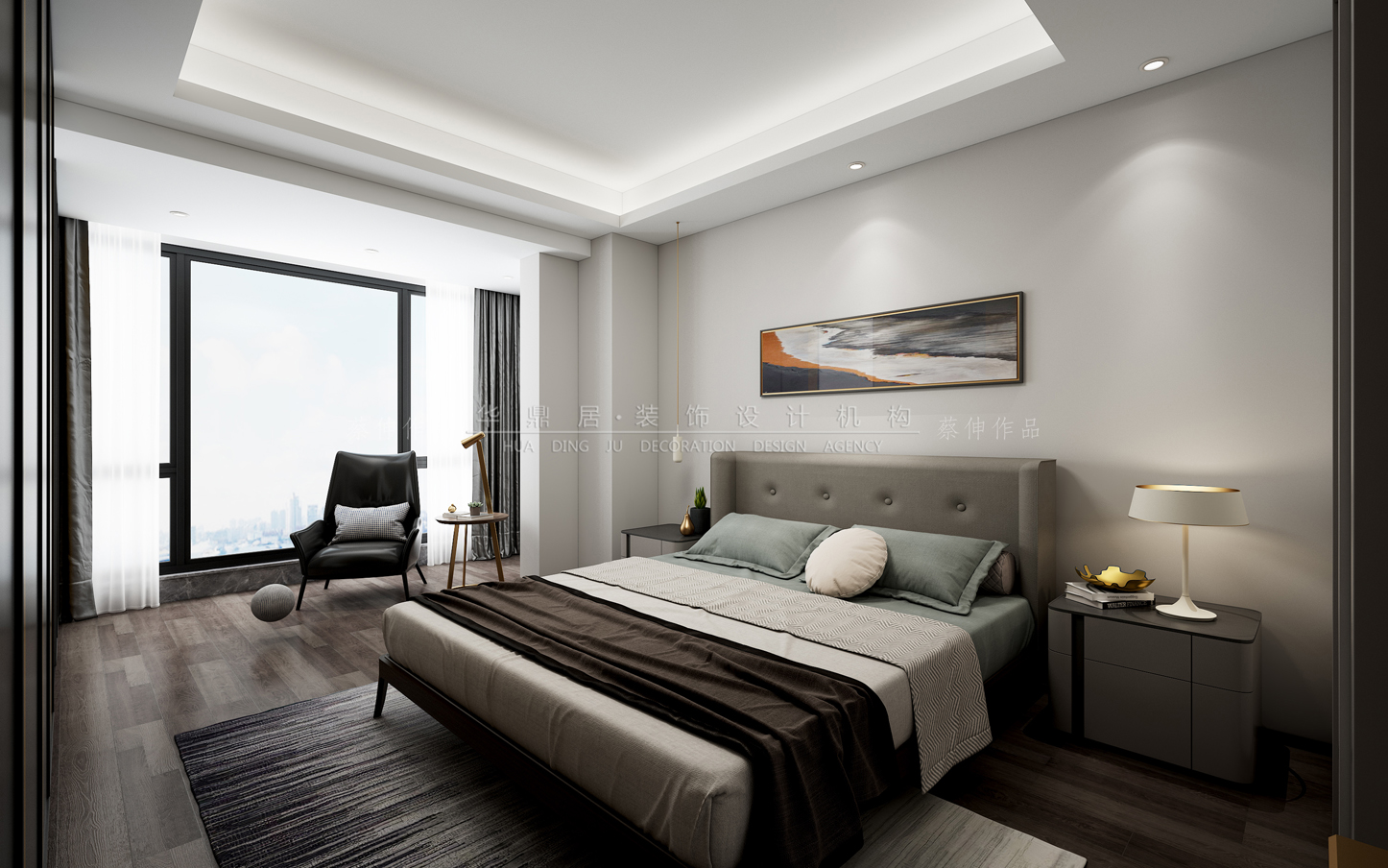 设计说明:本案设计从不同的空间出发,以自然为基调将极简·精致·休闲的概念引入,营造出开放自在的空间氛围。 不以华丽包装,吸引人们对空间的眷恋。强调借由艺术与自然的结合,让空间达到一种“人·艺术·自然”相互融合,彼此促进的环境效果。在公共区域的设计上,以结合生活品味,开阔大气的空间氛围为主轴,用色材质都偏向沉稳、洗练,白色石材的运用,间接扩大了空间的视觉效果。主卧区域以精致的手法安排恬静的休息空间,木质地板使整个空间更加温馨宁静。