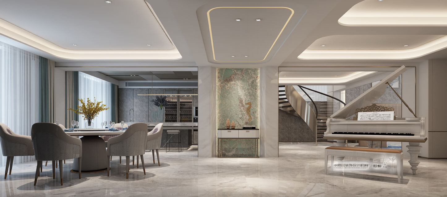 设计说明:现代轻奢,注重高品质与设计感,将优雅时尚的质感结合现代材质及装饰技巧,呈现在居室中,展示着精致高端的生活态度。淡雅的色彩搭配干练的线条,点缀以精致的几抹亮色、金属色的巧妙混搭,让空间在简约的外表之下丰富了空间层次,不动声色地流露出灵魂中的优雅。