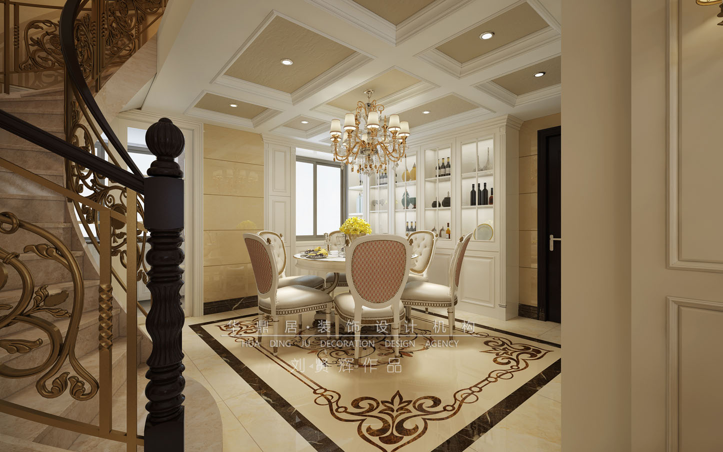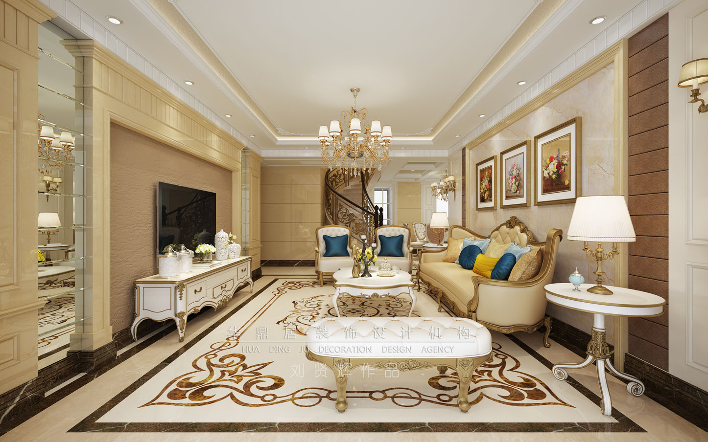 设计说明:本案强调线形流动的变化,将室内雕刻工艺集中在装饰和陈设艺术上,色彩华丽且用暖色调加以协调,变形的直线与曲线相互作用以及猫脚家具与装饰工艺手段的运用,构成室内华美厚重的气氛