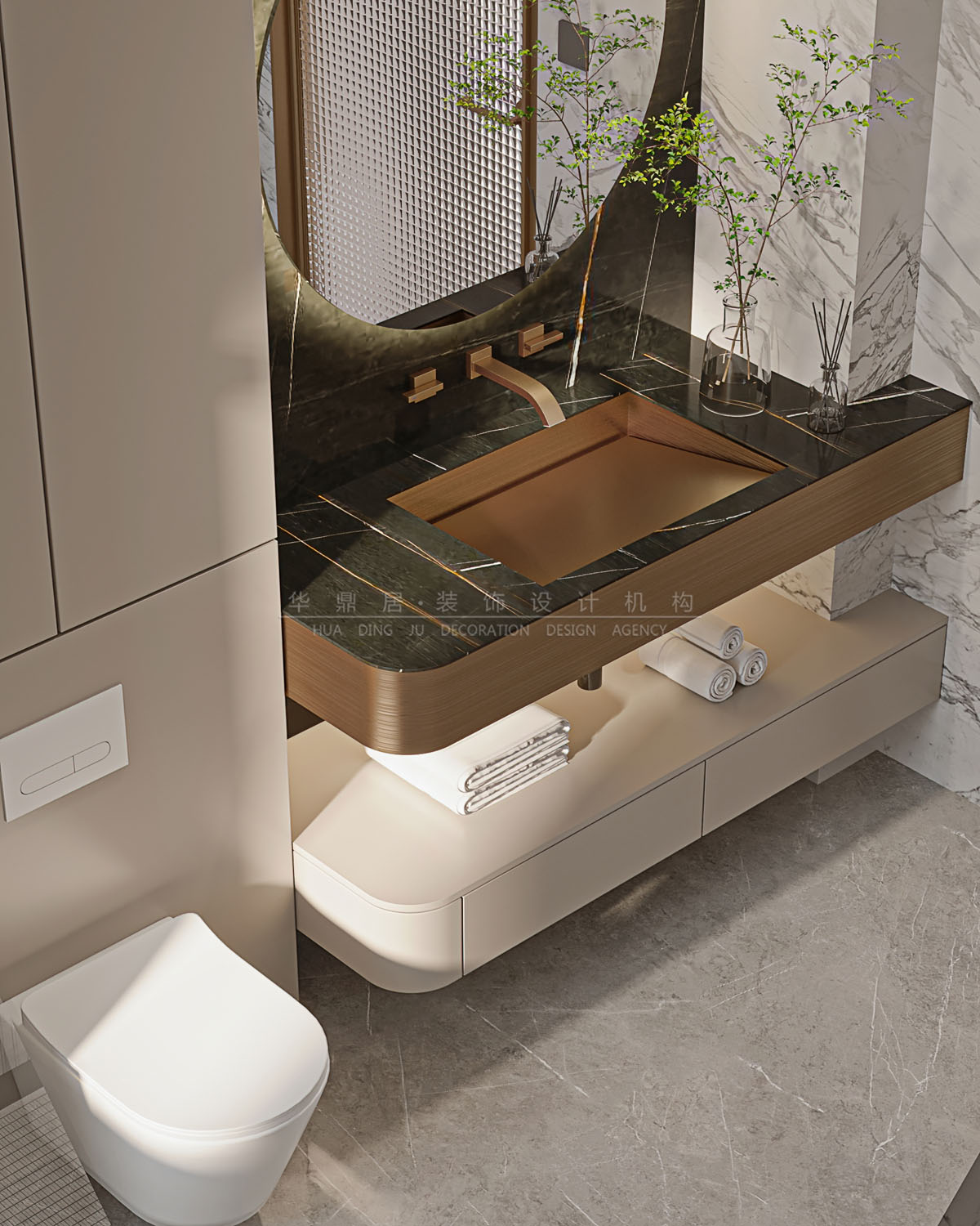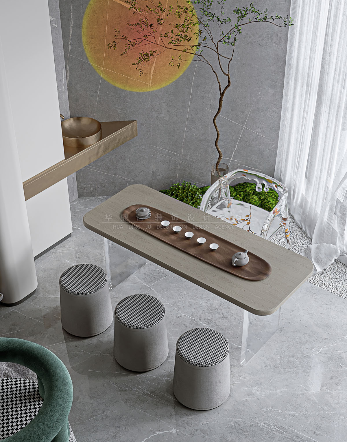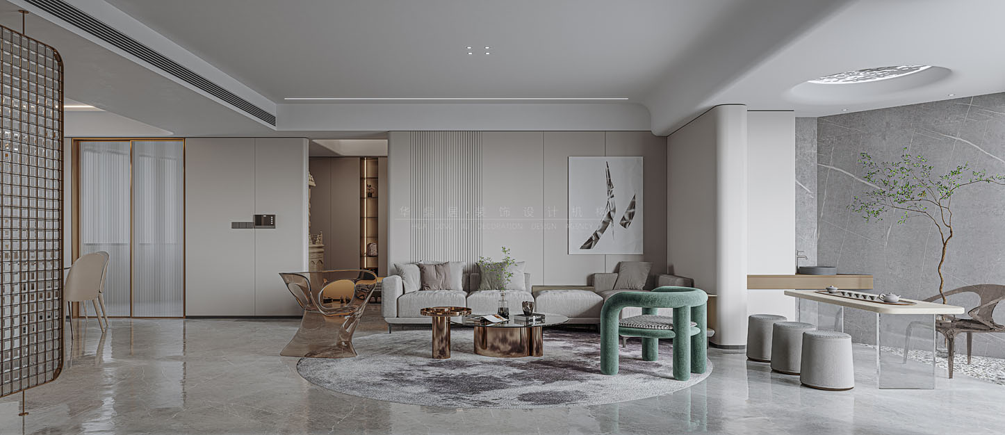 设计说明:以极致简约风格为基础,通过一些精致的软装元素来凸显质感,同时也浓缩着意想不到的功能与细节,从而彰显了一种高品质的生活方式。在色彩选择上,轻奢风格一般会选用带有高级感的中性色,诸如驼色、象牙白、奶咖、黑色及碳灰色,来演绎一种“低调的奢华”,令空间质感更为饱满。