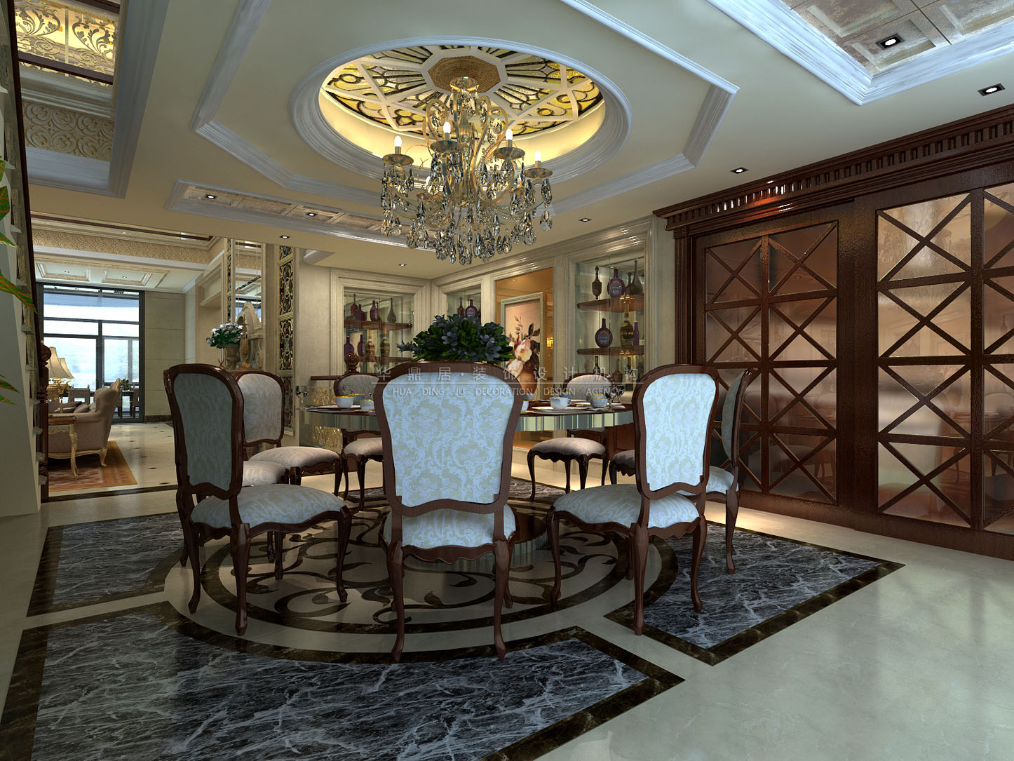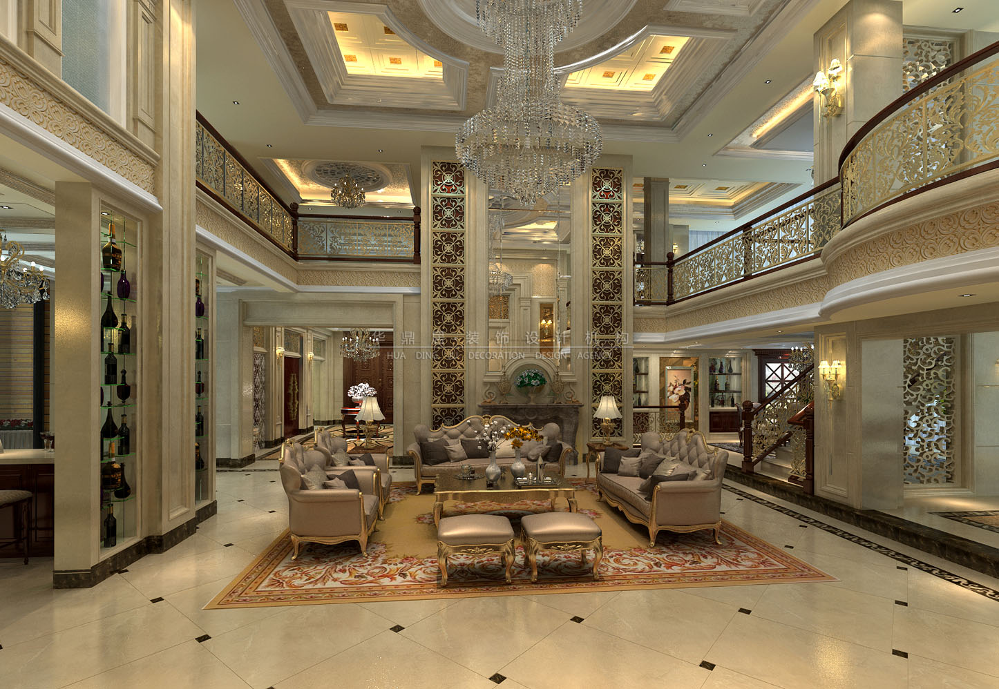 设计说明:本案设计师通过独到的设计,将欧式风格演绎成一种优雅的平衡姿态。含蓄、考究的家具,亦不乏令人踏实的温厚之感。客厅拥有挑高的结构,体现了居室的尊贵奢华之感,华丽的水晶吊灯营造气氛,门窗成圆弧形,并用欧式独有的花纹石膏角线勾边,局部的银镜饰面使空间更加有深度。设计师注重对软装陈设的展示,墙面装饰多以精美的松香玉、精细的实木拼花、柔美的艺术涂料、复古帷幔式的窗帘相搭配,构成了室内庄重豪华的气氛。整栋别墅空间,结合主人的生活习惯以及不俗的生活品味,打造了一个精彩的欧式风格的设计案例。
