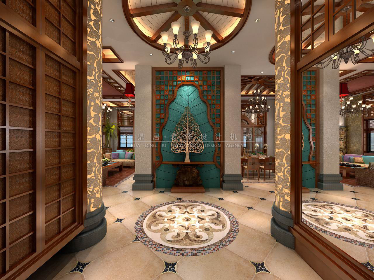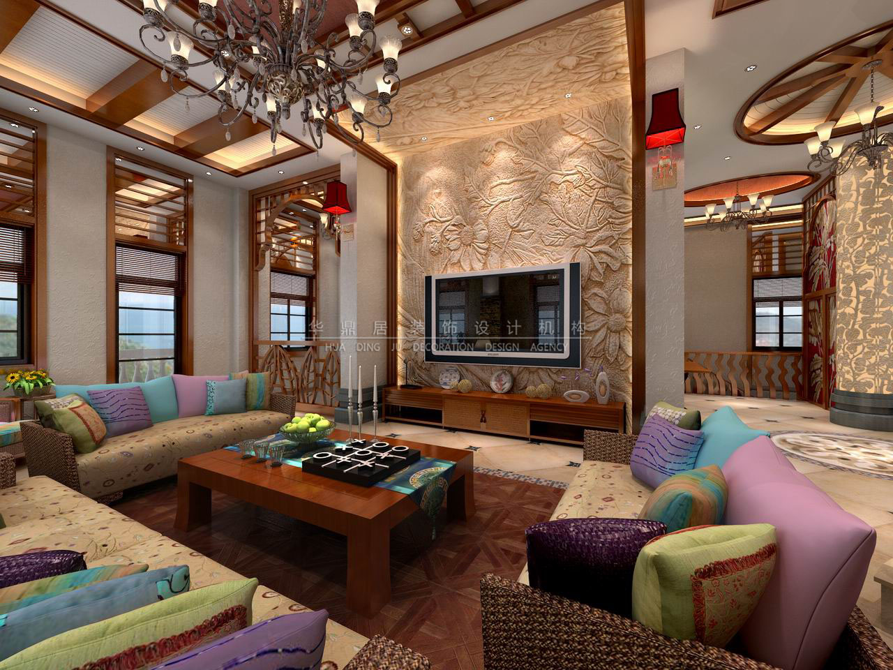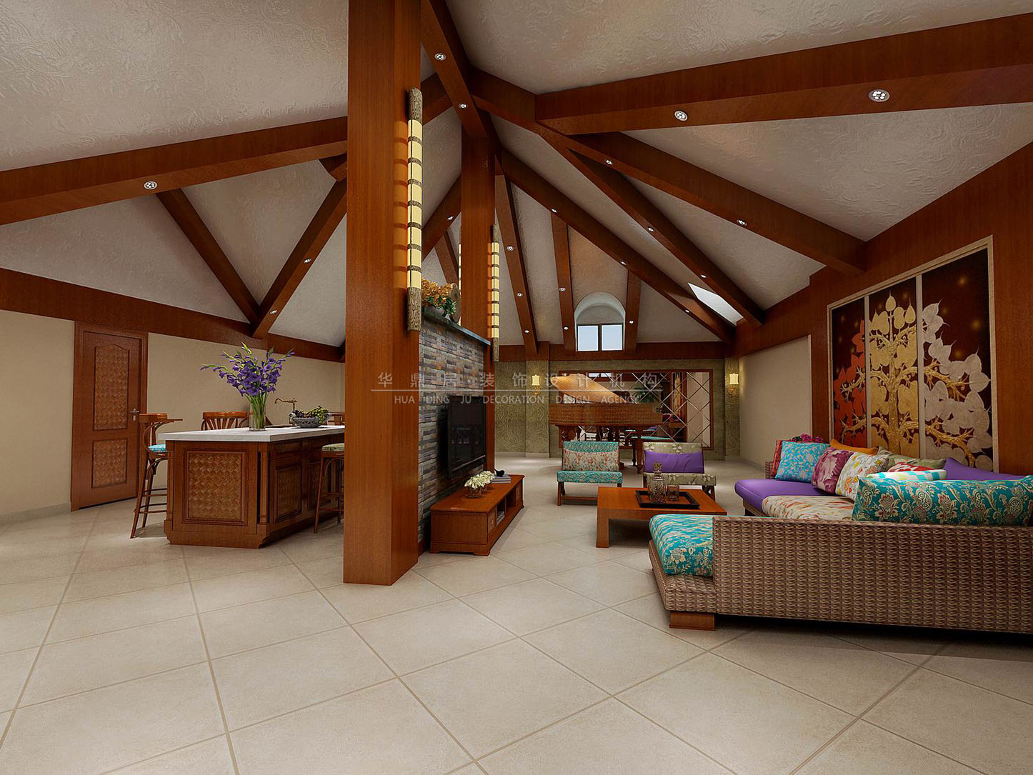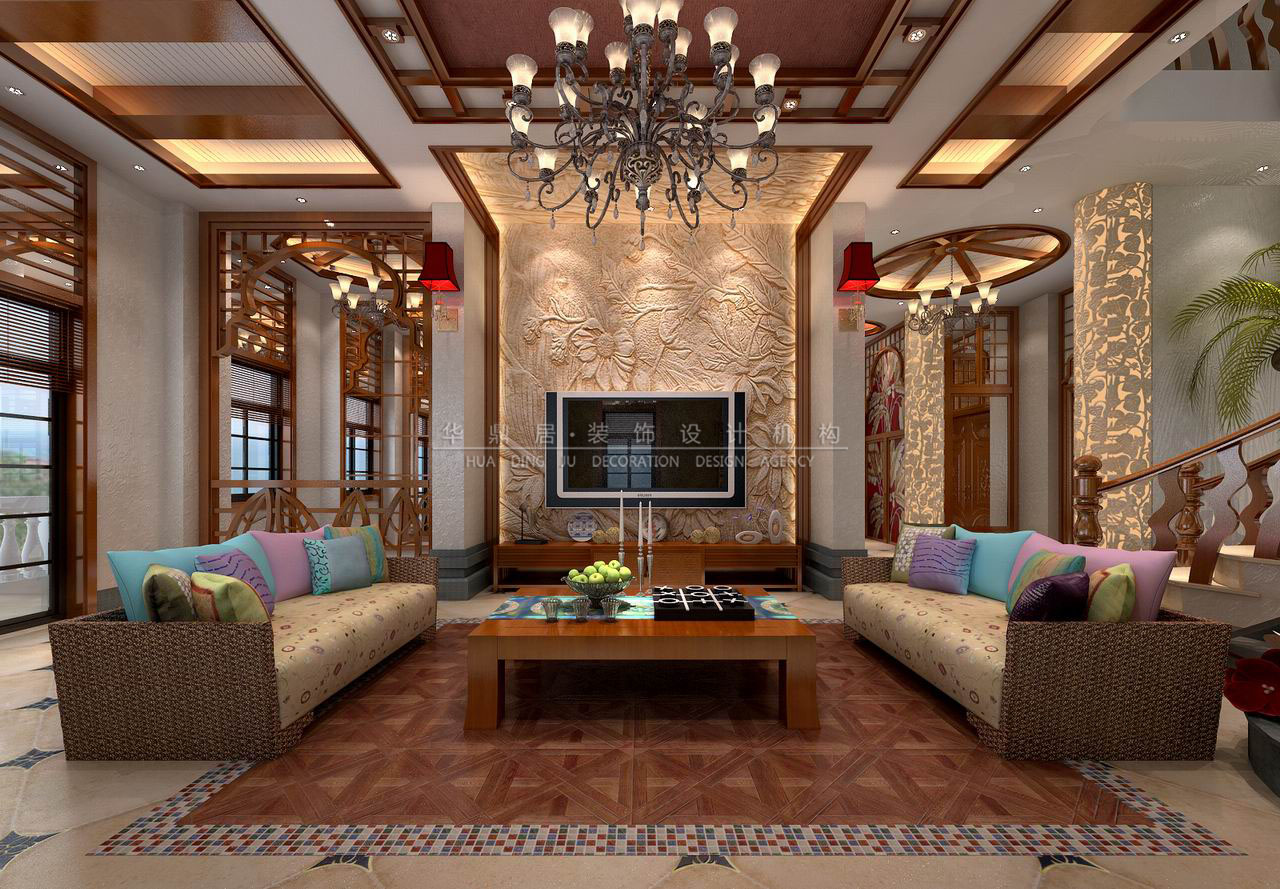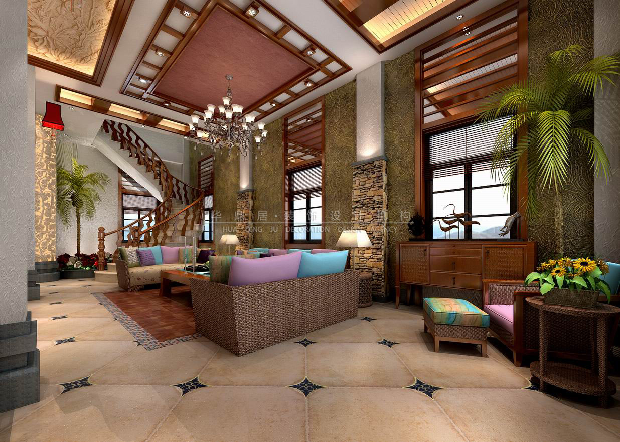 主要建材:石材、艺术涂料、艺术玻璃、木地板等