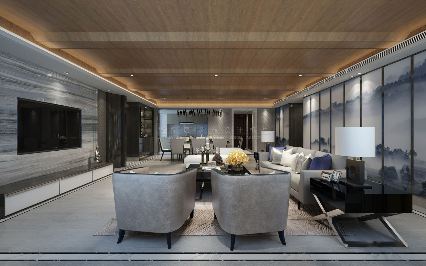 主要建材:石材、艺术涂料、墙板、硬包、木饰面、维卡木等。