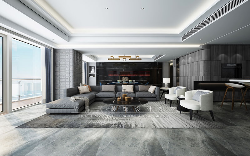设计说明:高级灰无疑是一种骨子里流淌着高端品质感与时髦感的颜色,可沉稳大气,亦是优雅动人,可时尚简约,也可奢华明媚。 用高级灰来打造客厅的优雅格调,灰色沉静内敛的气质能烘托客厅的氛围,更能带来前卫现代的感觉。同时,它也能跟各种亮色搭配起来。在材质上、比例上做出一定的凸显、取舍,可使空间瞬间变得精致无比!富的层次感。