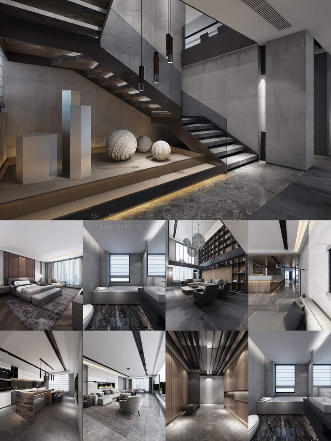 主要建材:石材、岩板、木地板、钢结构、艺术涂料、