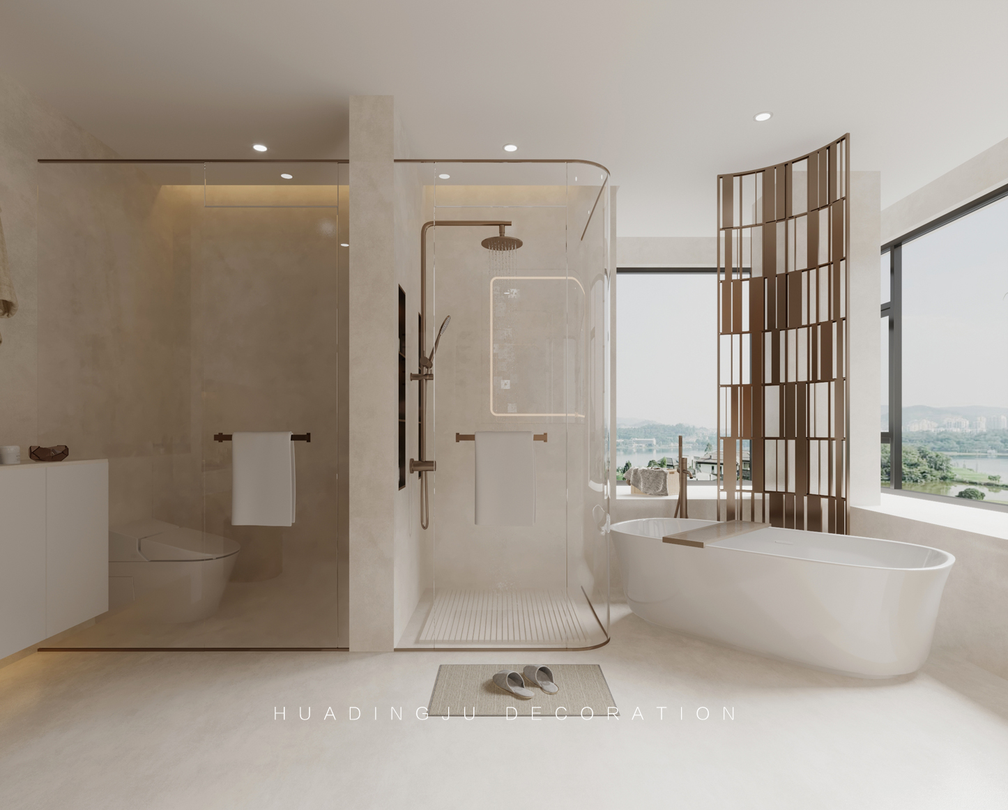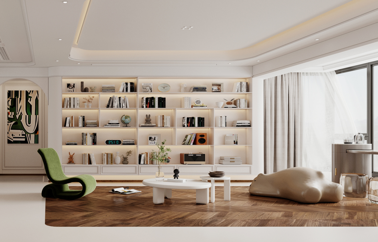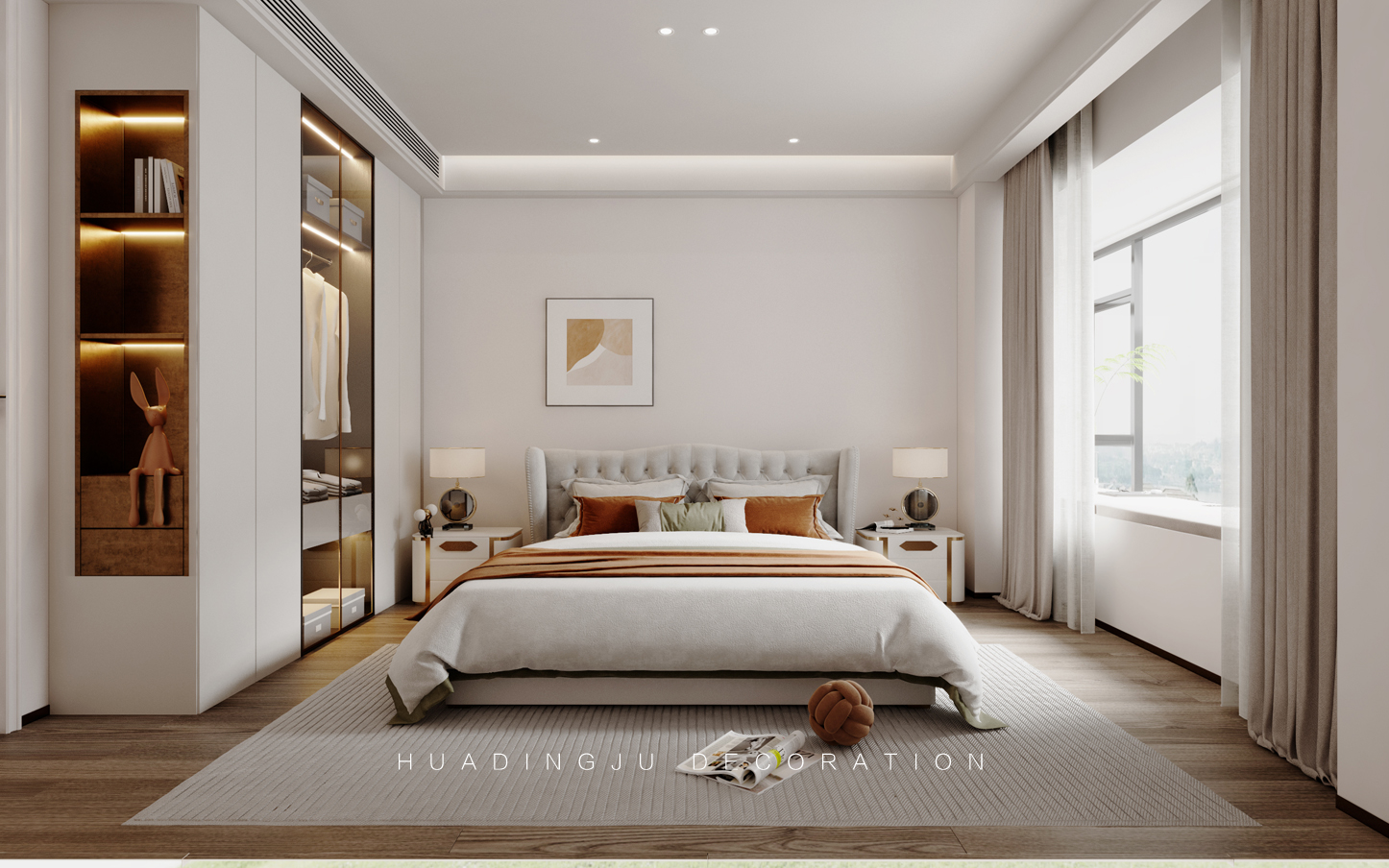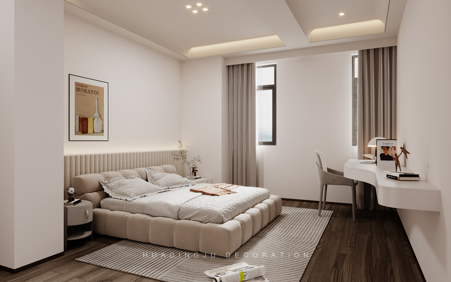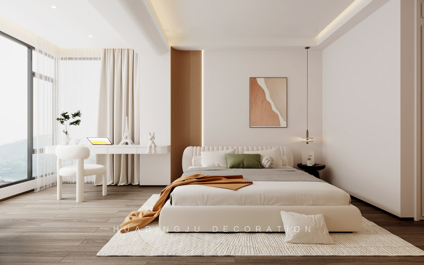 设计说明:每个空间都有独特的生活理念,展现不同的幸福追求,随着生活的升温,空间品质得以展现。细腻的设计灵感在每一个元素中舞动,无论世界如何繁华变迁,总会给人一丝温暖。 设计以柔和、经典的色彩为主,米色、象牙白、浅灰和柔和的蓝绿色,营造出温暖且宁静的氛围,使整个空间显得更加宽敞和舒适。墙壁通常采用浅色系,搭配深色的家具和装饰物,形成视觉上的对比与平衡。