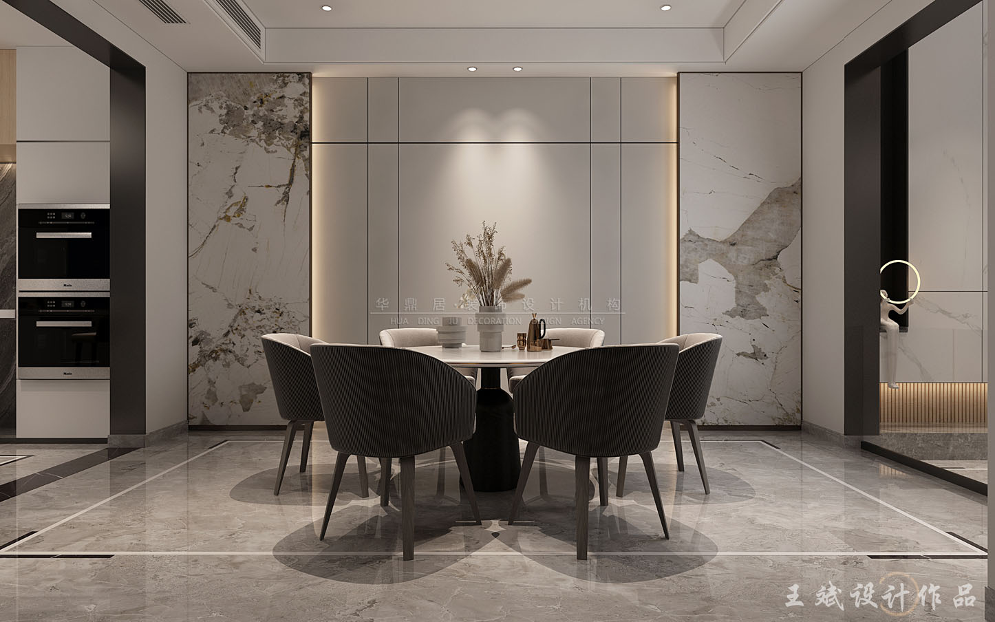 主要建材:大理石、丝光布艺、皮革、哑光金属、木饰面等