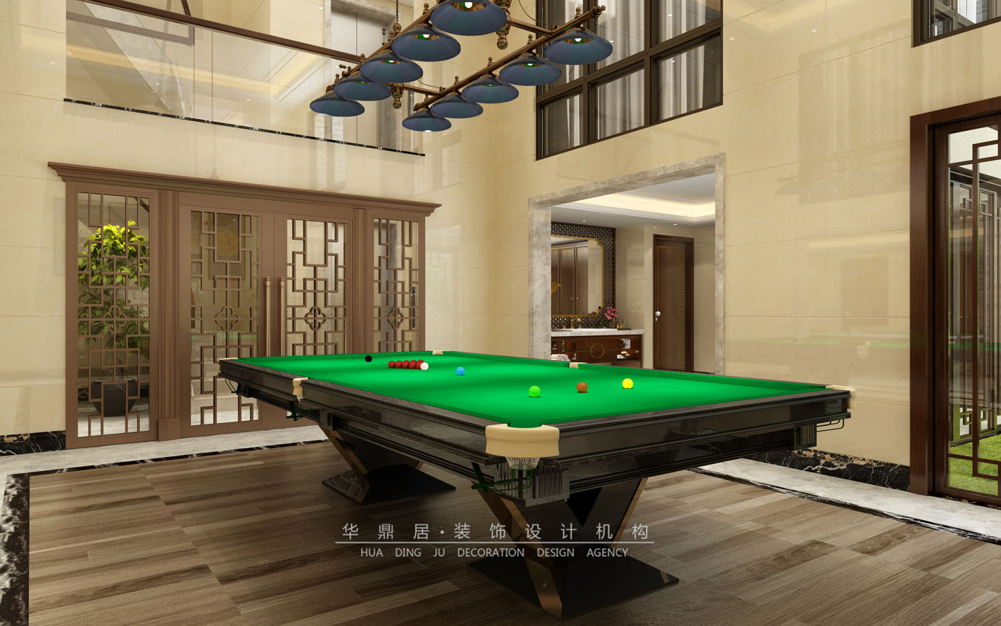 主要建材:意大利灰地砖、钛金线条、胡桃木墙板、阿富汗黑金花线条