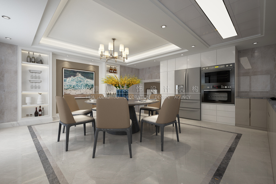 设计说明:本案围绕现代风格为主题,运用天然石材与实木的完美结合设计,将一些现代经典元素融入其中,在色彩上以简约色彩的高度凝练和造型的极度简洁,在满足功能需要的前提下。让一些空间和人与物进行合理的分配组合,描绘出最丰富动人的空间效果。