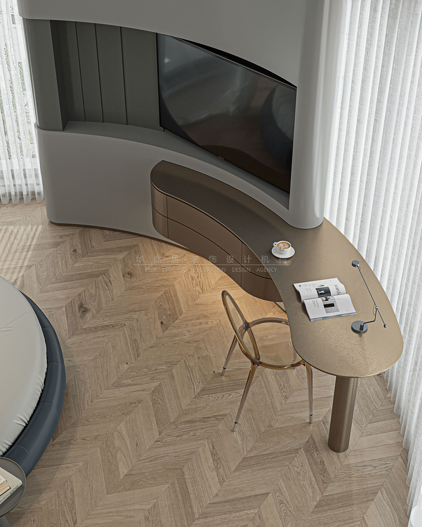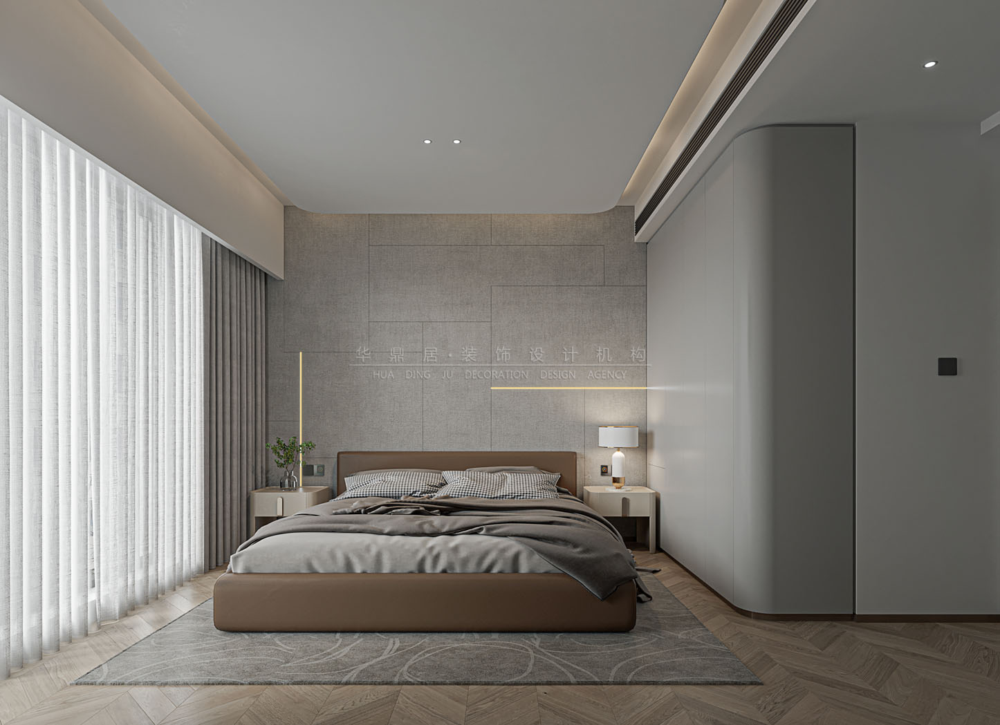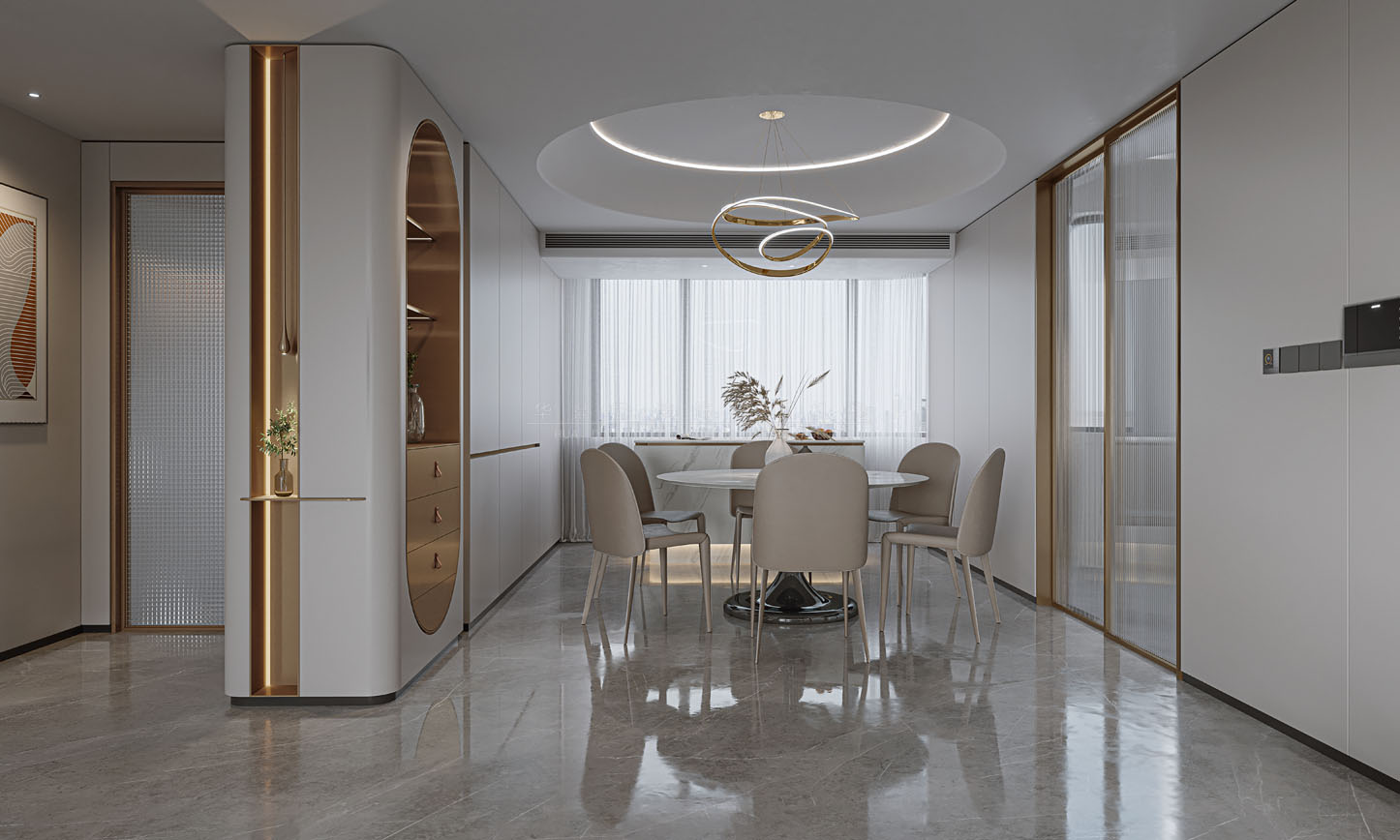 设计说明:以极致简约风格为基础,通过一些精致的软装元素来凸显质感,同时也浓缩着意想不到的功能与细节,从而彰显了一种高品质的生活方式。在色彩选择上,轻奢风格一般会选用带有高级感的中性色,诸如驼色、象牙白、奶咖、黑色及碳灰色,来演绎一种“低调的奢华”,令空间质感更为饱满。