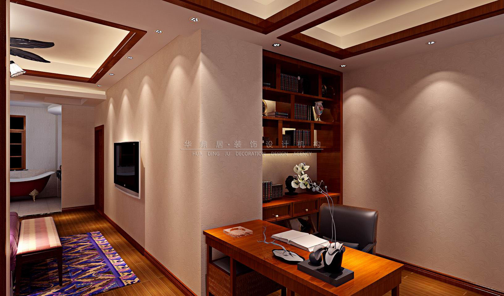 设计说明:客厅以大气优雅为主,木制半透明的推拉门与墙面木装饰的装饰造型,以冷静线条分割空间,代替一切繁杂与装饰。设计以不矫揉造作的材料营造出豪华感,使人感到既创新独特又似曾相识的生活居所。主卧室可选用深木色,金色丝制布料结合光线的变化,创造出内敛谦卑的感觉。主卫可采用石材与镜子的设计为其增加变化。奢华既非繁杂的雕饰,更非金碧辉煌的装饰,只要充分地运用材质的特点,现代的设计也可以传达视觉与舒适的平衡。