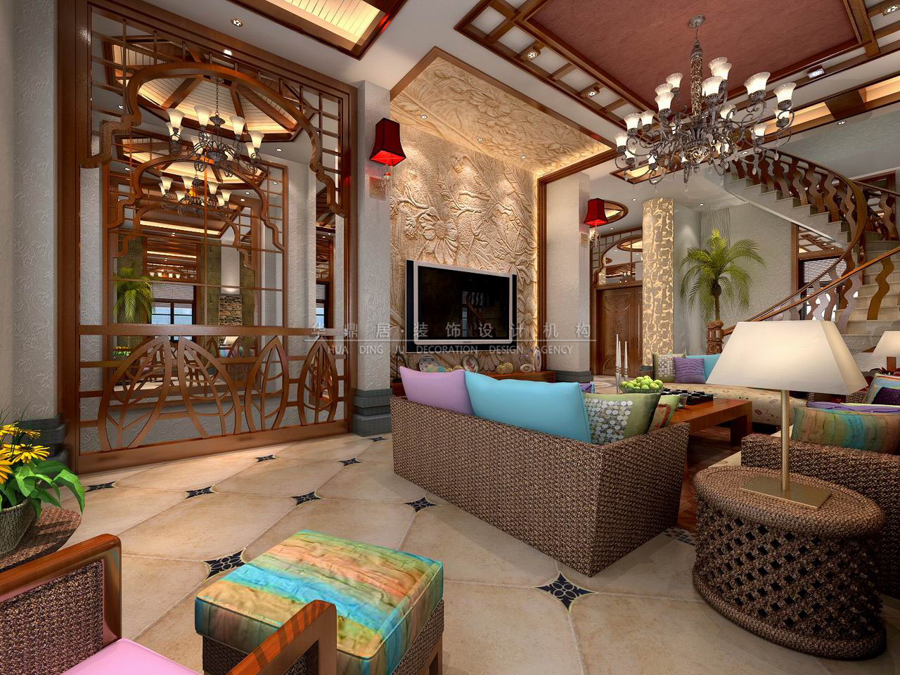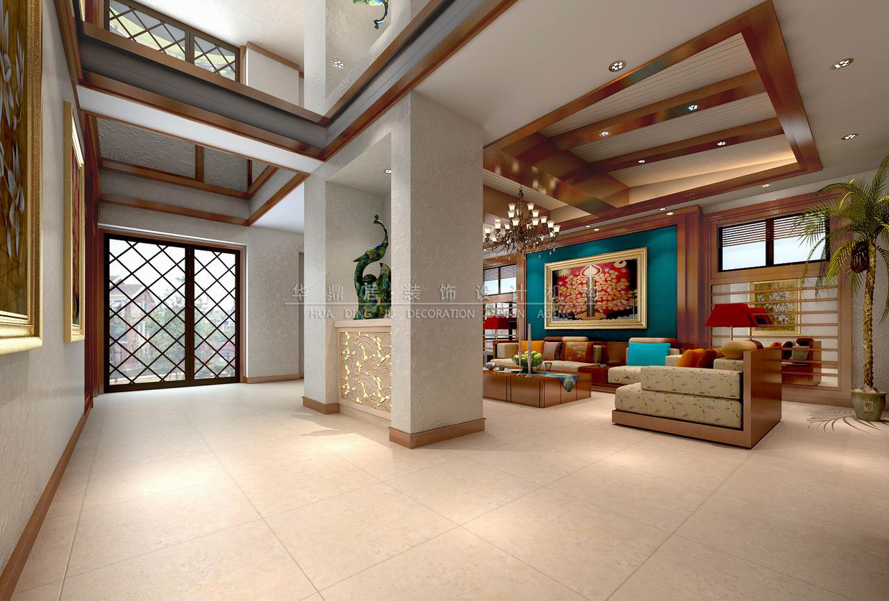主要建材:石材、艺术涂料、艺术玻璃、木地板等