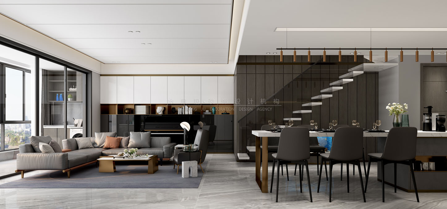 设计说明:本案位于厦门.春江彼岸,空间布局以舒适实用性为主,在满足业主所需求的空间情况下,将原本紧凑压抑的空间最大化,使空间让人达到一个通透的舒适度,楼梯的改造以及开放式厨房的改造是让空间灵动的核心。 在有限的空间以及有限的层高,运用合理的布局,简练的线条,塑造整个空间的氛围,整个空间主要以白色调为主,灰色调为辅。