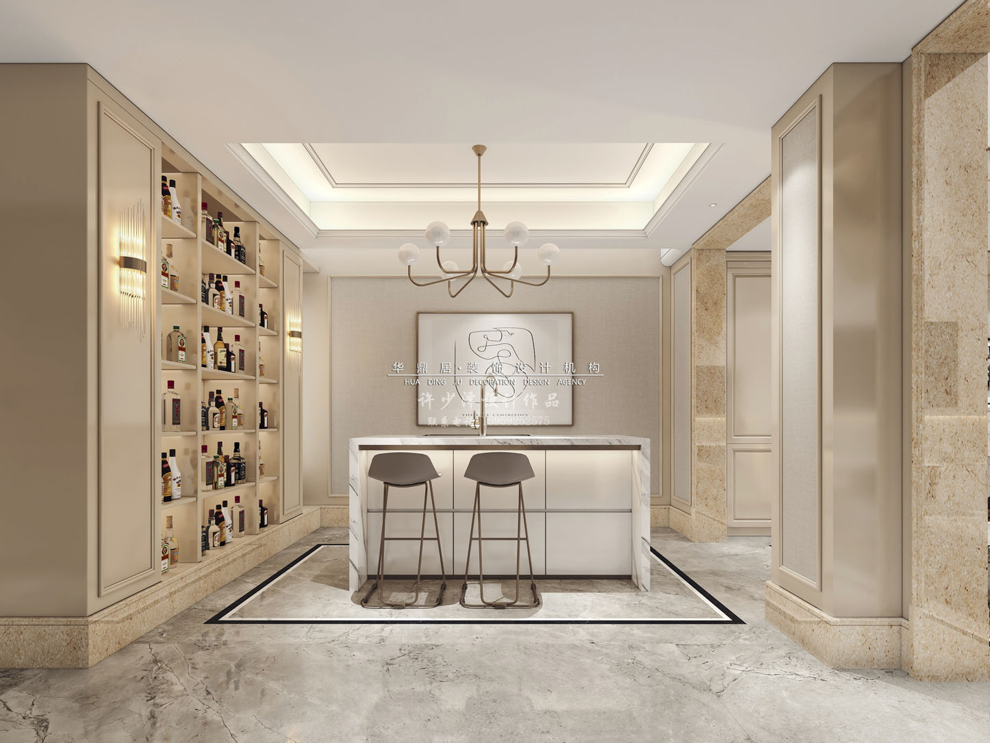 主要建材:石材、木地板、金属线条、艺术涂料