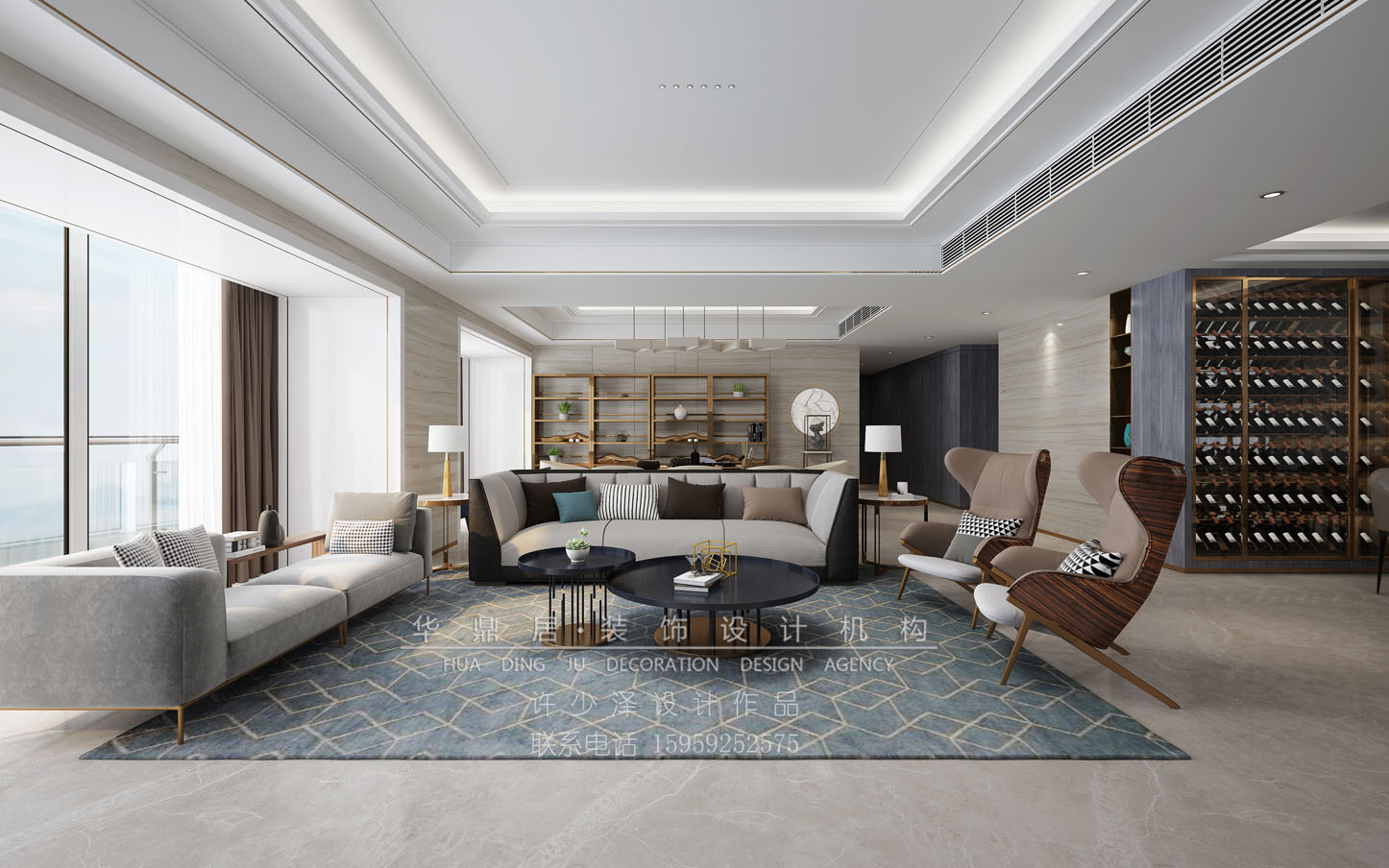设计说明:案位于中国.厦门的五缘湾大户型住宅,空间布局以舒适实用性为主,在追求现代色彩淡雅之际,大面积咖啡色搭配白色营造空间品质感。些许的金属色点缀,体现尊贵质感。配合外面的美景,在空间利用和景观上实现最大化