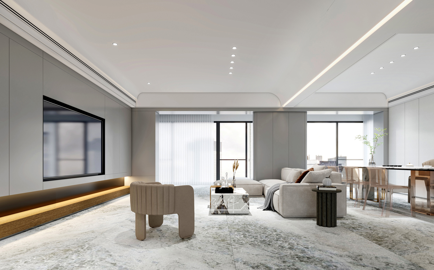主要建材:岩板、整木、石材、艺术涂料