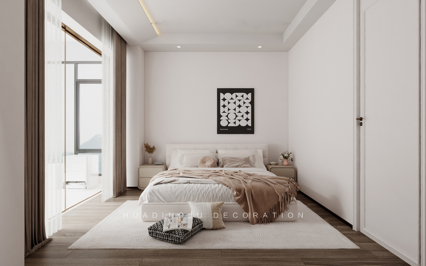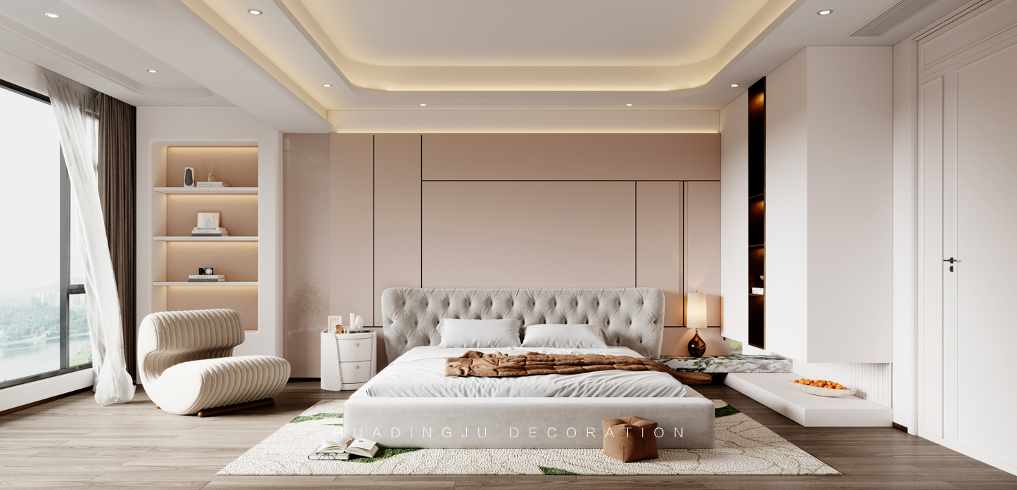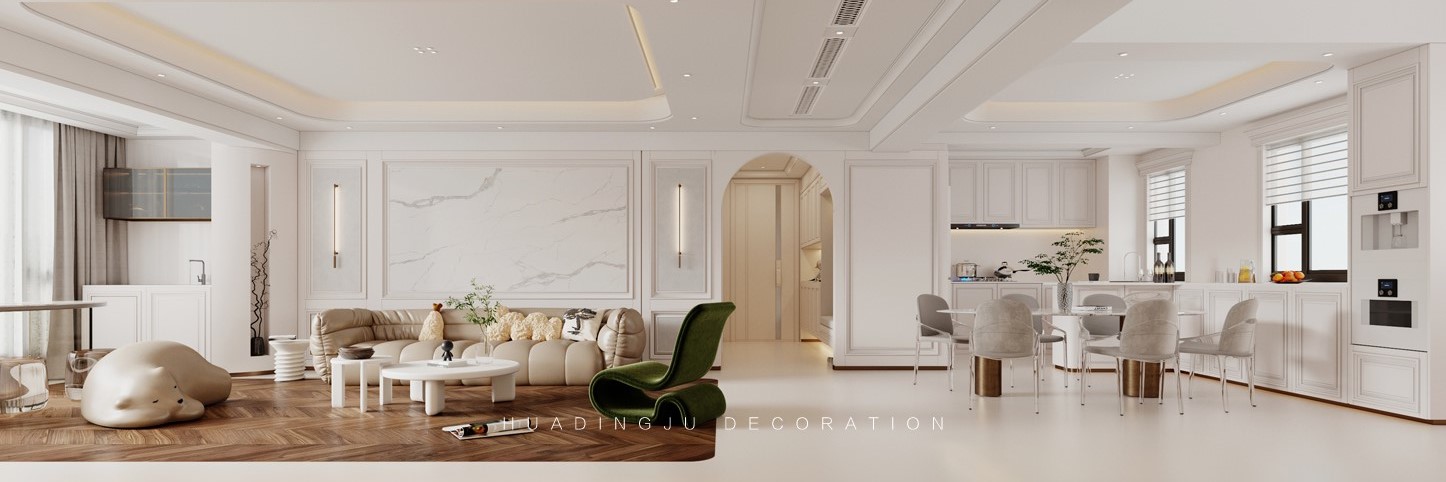 设计说明:每个空间都有独特的生活理念,展现不同的幸福追求,随着生活的升温,空间品质得以展现。细腻的设计灵感在每一个元素中舞动,无论世界如何繁华变迁,总会给人一丝温暖。 设计以柔和、经典的色彩为主,米色、象牙白、浅灰和柔和的蓝绿色,营造出温暖且宁静的氛围,使整个空间显得更加宽敞和舒适。墙壁通常采用浅色系,搭配深色的家具和装饰物,形成视觉上的对比与平衡。